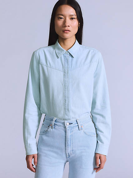 Levi's® Blue Tab™ is an elevated collection that infuses our iconic denim heritage with traditional craftsmanship. Expect thoughtful details, sharp tailoring and finishes that are rich with character. This is an entirely new shape of Blue. Our Club Shirt keeps it minimalist with a subtle front yoke, a button-up front and a classic, standard fit.