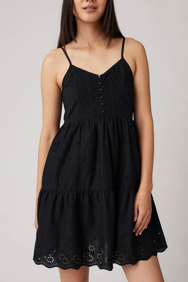 The perfect partner to warmer days. The Cora Mini Dress features adjustable straps, a babydoll silhouette and pretty eyelet detailing. A warm-weather staple Cut with a babydoll silhouette Finished with pretty eyelet detailing.