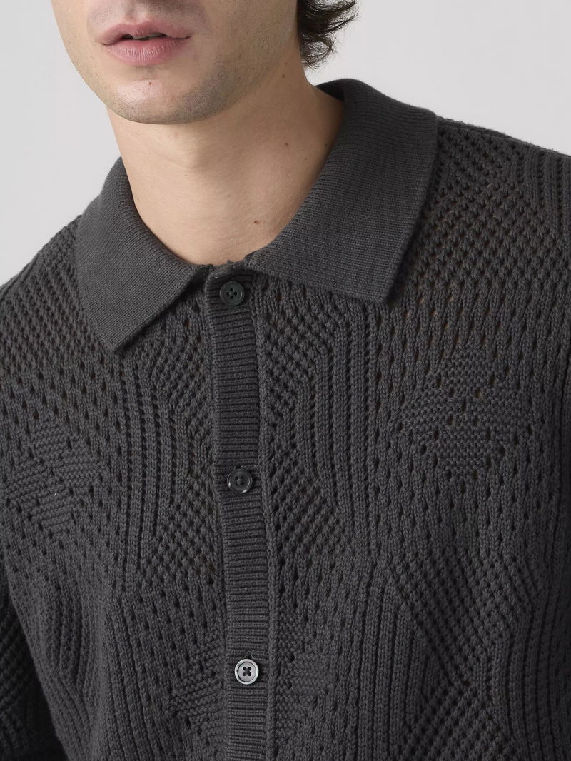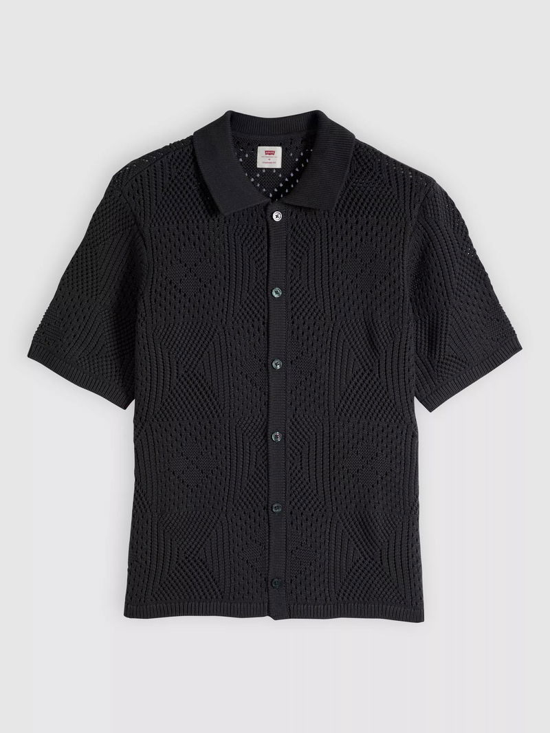 The classic camp shirt just got more comfortable. This Sweater Camp Shirt features a standard fit, a point collar and pointelle crochet.