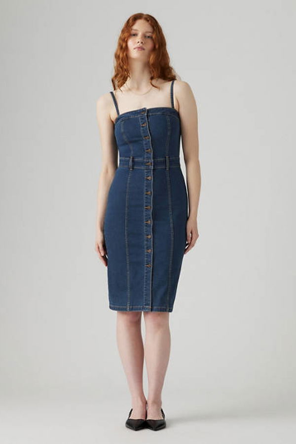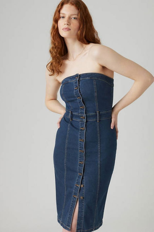 Our Denim Bustier Dress is a staple of your weekend wardrobe, thanks to its easy slim cut, flattering corset design and knee length. A weekend wardrobe staple With removable straps.