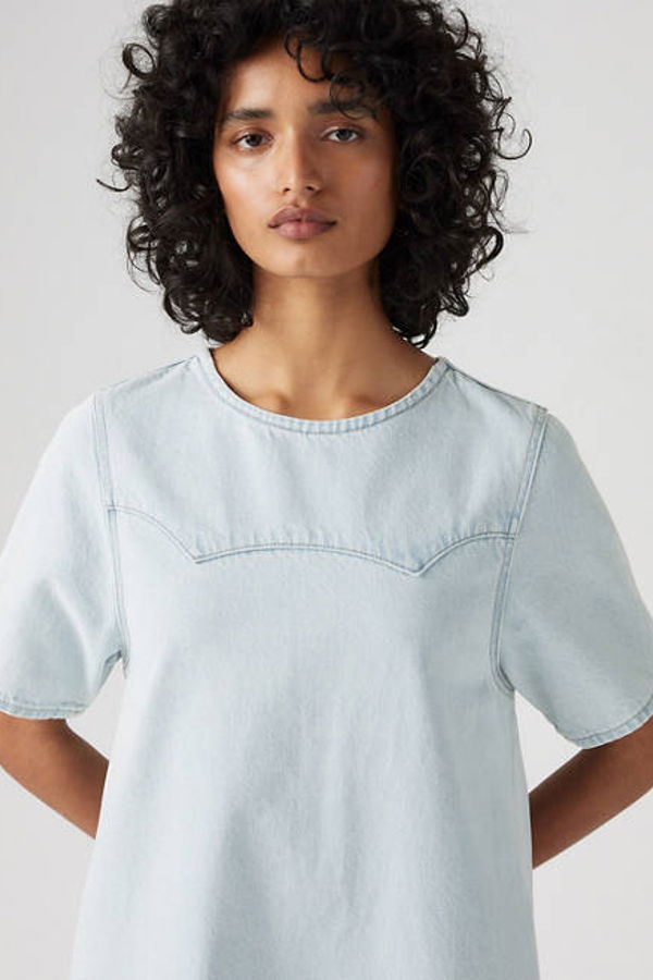 Your favorite denim meets a classic T-shirt dress design. The Denim Tee Dress was cut with a relaxed fit and features yoke detailing.