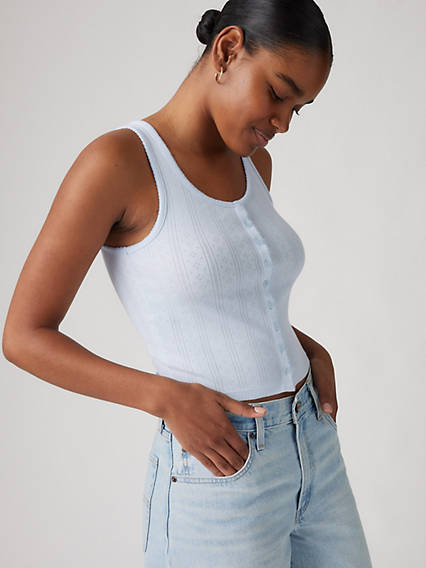 Inspired by one of the first knitwear pieces we made in the early 1900s, Levi's® Dry Goods was first resurrected in the late '90s-and now, it's back again.Meet our Pointelle Tank: Stamped with our signature Dry Goods label on the left hem and a fitted silhouette, it won't be long before you're pairing this top with all of your denim.