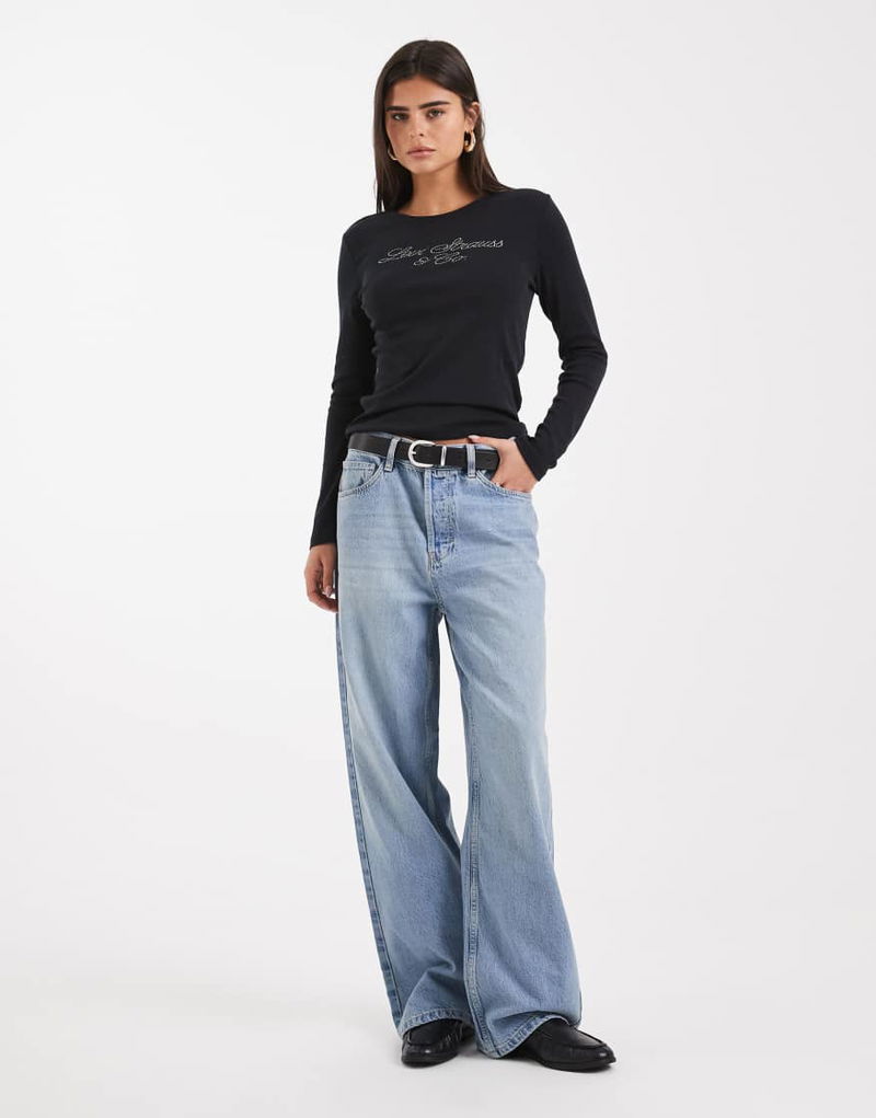 Essential Long Sleeve T-shirt With Glitter Logo In Black