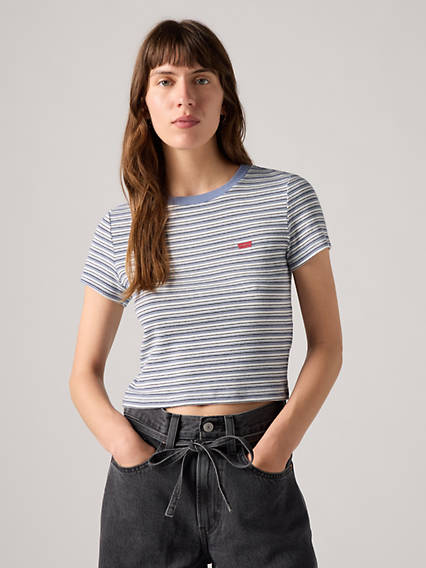 Classics like our Essential Sporty T-Shirt never go out of style. We made this one with an ultra-flattering high neckline and a fitted cropped cut-all topped off with our signature red tab.