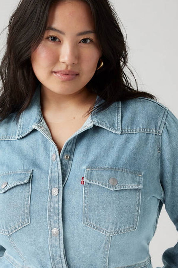 An A-line take on the classic Levi's® shirt, our Flynn Western Dress gives denim a major upgrade. We designed it with classic Levi's® details like double front pockets, a pointed collar and buttons down the front.