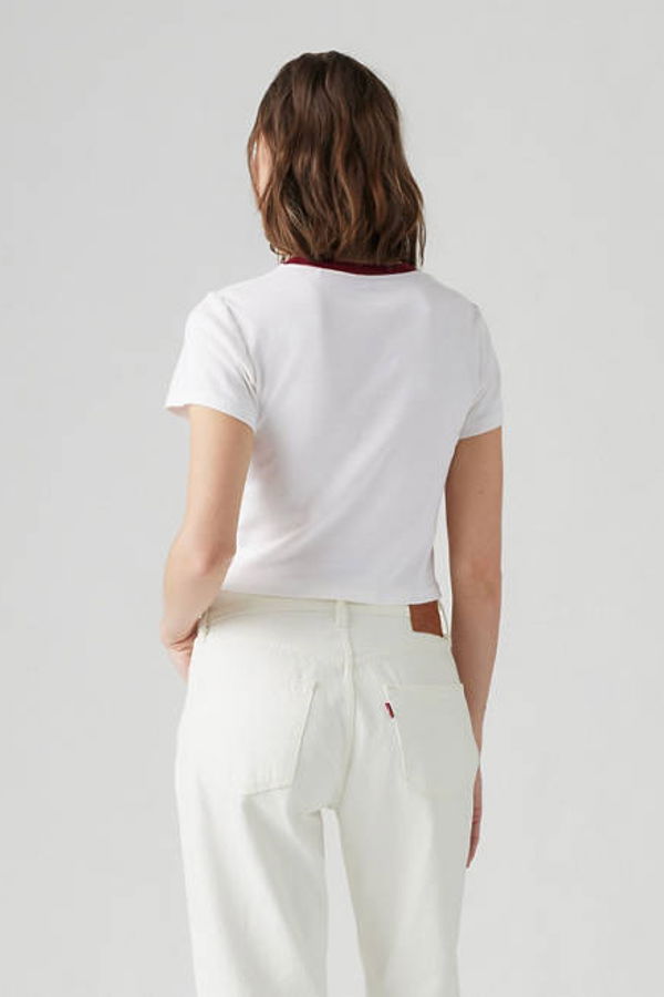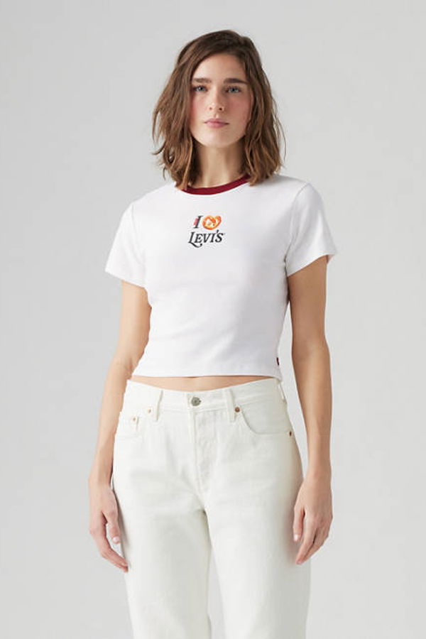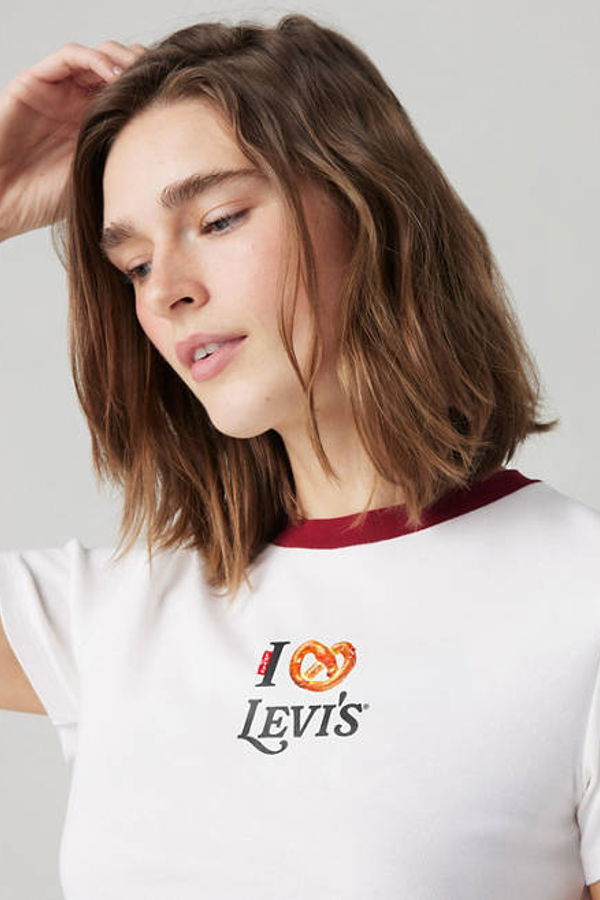 Can something be both instantly iconic and super playful? We think so. Case in point, our Graphic Mini Ringer T-Shirt. This cute crewneck pairs a cropped fit with bold Levi's branding, thus striking that elusive balance between classic and prep. A tiny top with maximum Levi's® style Made with a cropped fit Short sleeves with contrast ribbing Finished with our iconic batwing logo.