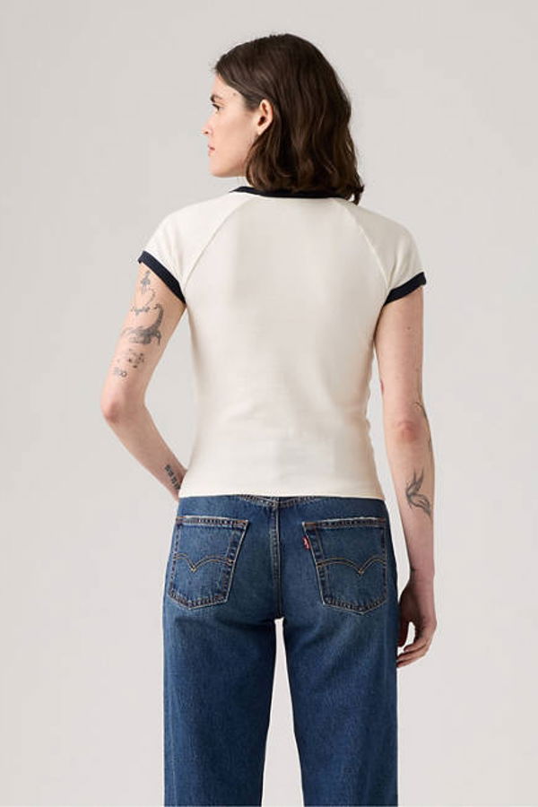 There's nothing basic about the Graphic Riley Raglan Tee. Cut with a slim fit, they designed it with easy short sleeves, a ringer design and topped it off with a one-of-a-kind Levi's® glitter graphic.