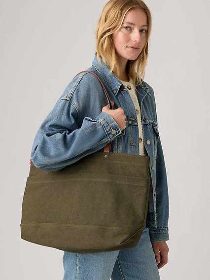 Inspired by our archive, this Tote-All Bag is the ideal throw-it-all-in-and-go bag. We designed it with durable cotton canvas, leather straps, a main compartment with a snap closure, an interior patch pocket and rivets for reinforcement.