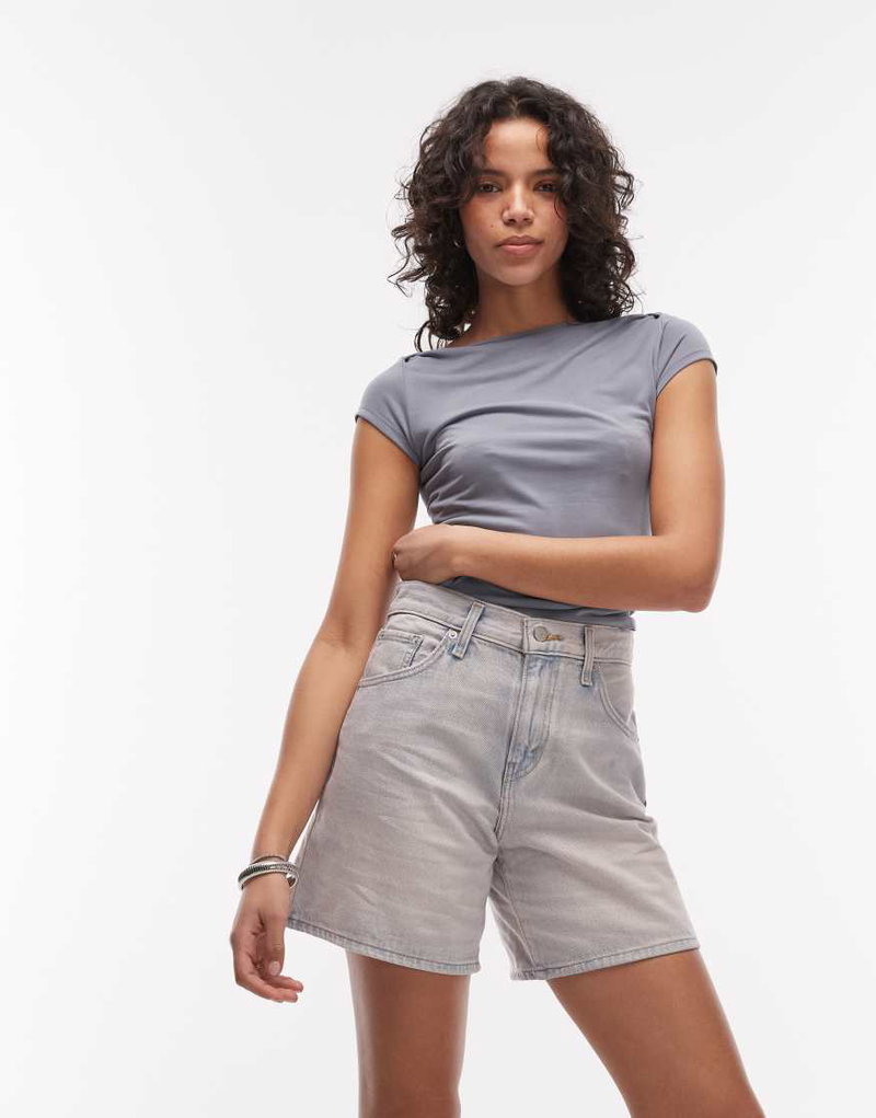 High Waist Baggy Shorts In Pink Tint