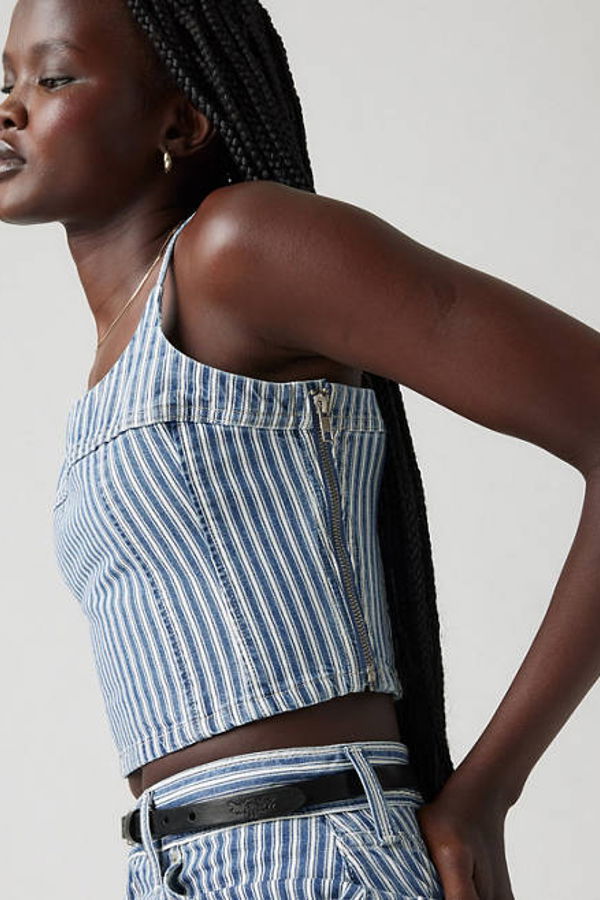 A timeless cami never goes out of style. The Jadine Denim Cami Tank features a flattering scoop neckline, adjustable straps and a body-hugging cropped fit.