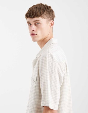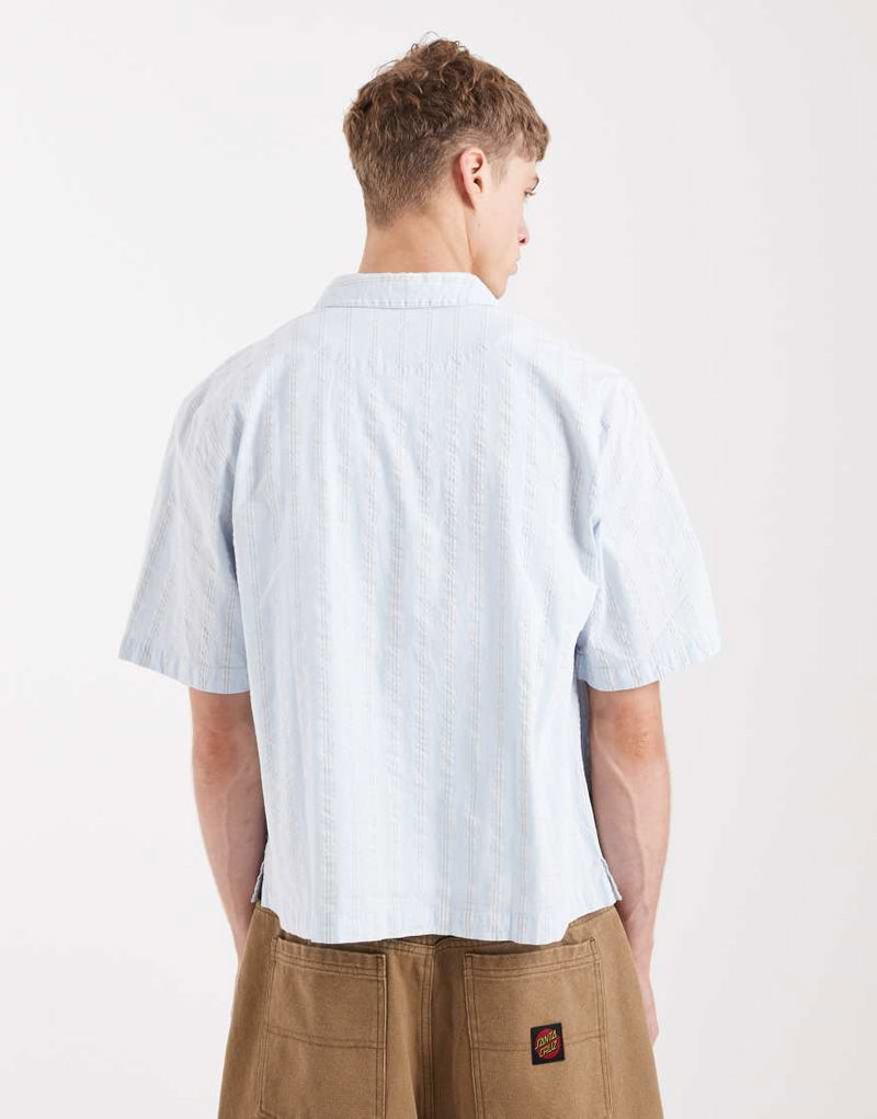 Lama Short Sleeve Boxy Shirt In Blue Stripe