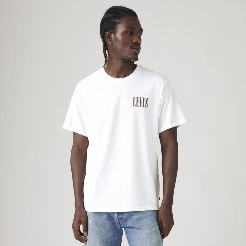 Jeans and a tee,name a more iconic duo we,ll wait. Made with a easy fit this Relaxed Fit Short Sleeve Graphic T-Shirt features signature graphics for an unmistakably Levi's, touch.