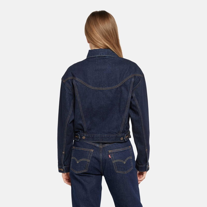 Levis Women's Shrunken Trucker Western Dream Cropped Denim Jacket