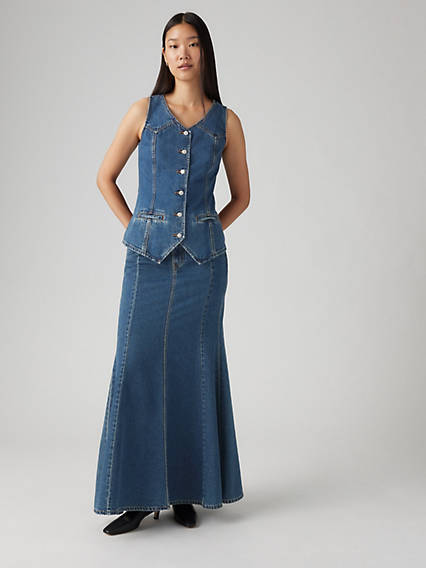 With throwback style (and attitude), our Longline Denim Vest is bound to become your go-to layering piece. It features a classic button-up front and a long, slim cut.
