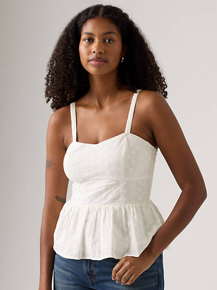 A super flattering sweetheart neckline and flared cut define our Lula Eyelet Peplum Tank. We designed it with slim straps, eyelet detailing and a slim fit.