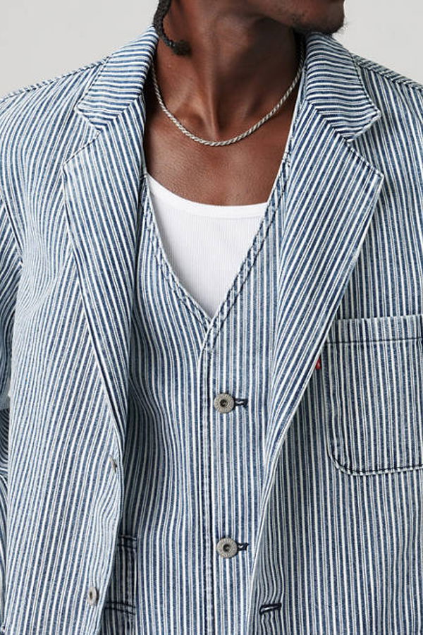 An essential blazer. The Mission Denim Blazer is made with classic denim and features a button-up front with an easy, standard fit. An essential blazer. Cut with an easy, standard fit.