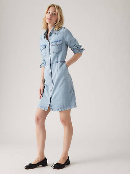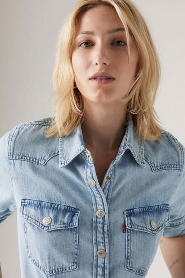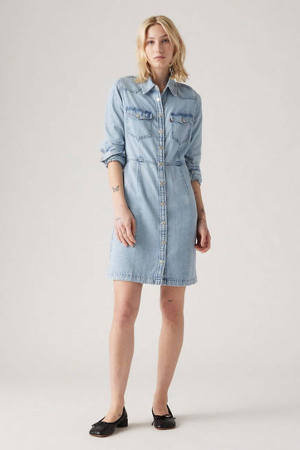 With classic Levi's® style and a western edge, our Otto Western Dress features a timeless button-up front, long sleeves, two chest pockets and a mini cut. A western-inspired dress. With a mini cut Features a button-up front. Finished with two chest pockets