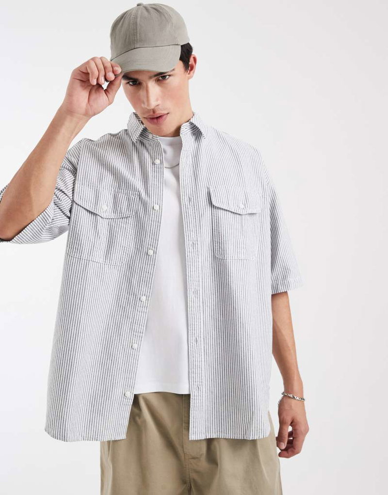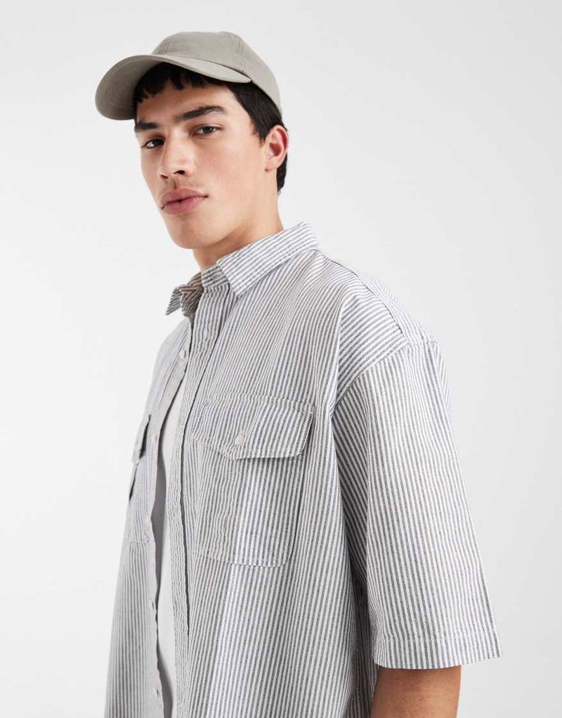 Pacifica Short Sleeve Loose Shirt In Black Stripe