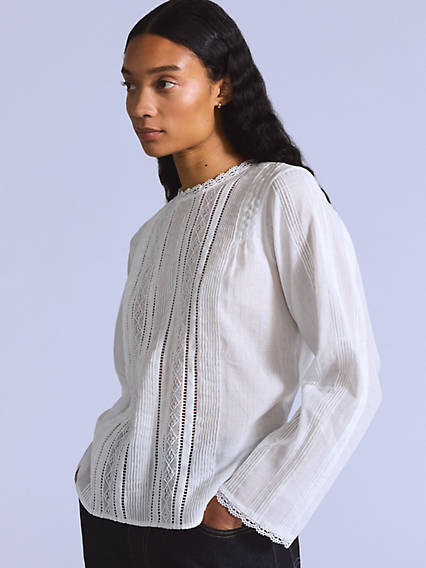 Levi's® Blue Tab™ is an elevated collection that infuses our iconic denim heritage with traditional craftsmanship. Expect thoughtful details, sharp tailoring and finishes that are rich with character. This is an entirely new shape of Blue.Our Palmo Blouse hits the sweet spot with refined detailing, a lace trim neckline and a tie detail at the back.