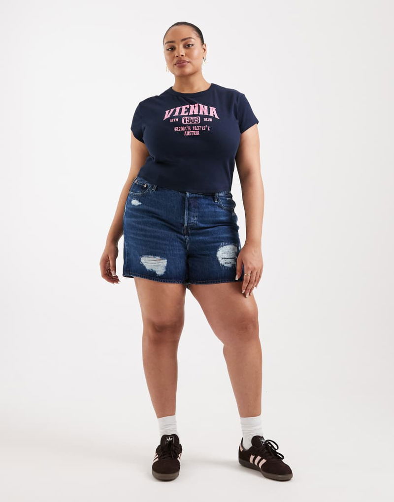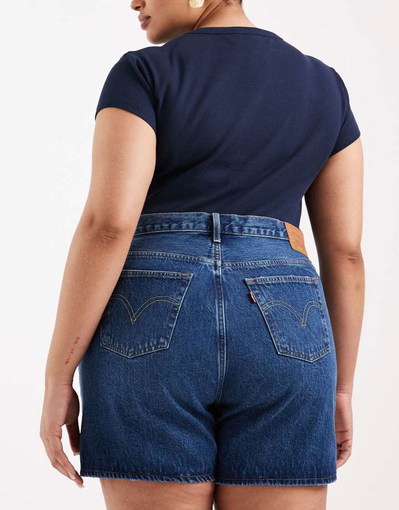Plus 501 Distressed Shorts In Mid Blue Wash
