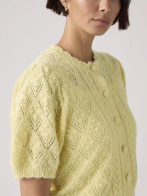 Pointelle Knitted Short Sleeve Cardigan In Baby Blue