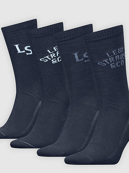 Embrace the comfort and quality with the Levi's® classic socks for men and women. You'll experience maximum comfort on the body thanks to the soft cotton. What's more, these classic socks feature a ventilation line to stay cool and dry and a reinforced heel and toe for extra durability. More than just a bonus is the comfort top. Comes in a 4 pack. Wear the Levi's® logo with pride.