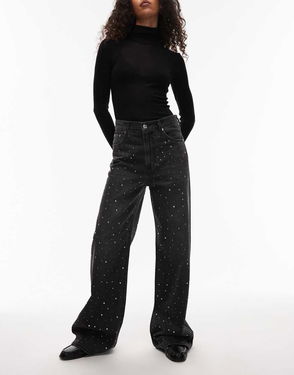 More than just denim Wide leg High rise Belt loops Five pockets Branded detail to reverse.