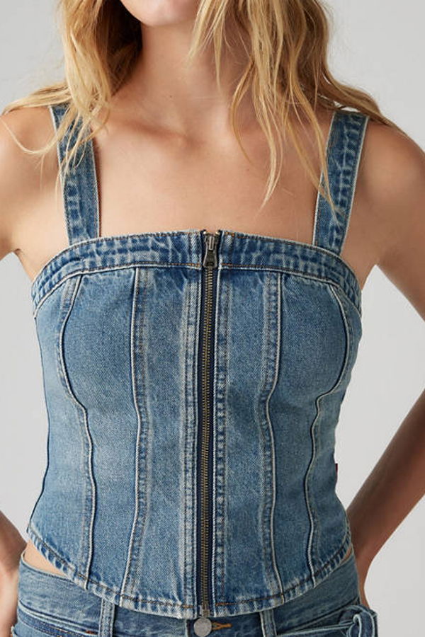 It's the top you'll be wearing all season long. This Sculpted Bustier is ultra-flattering thanks to its corset-inspired design, zip-up front and slim fit.