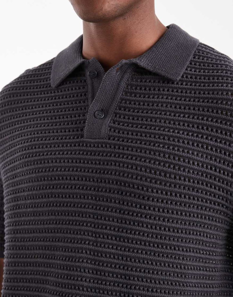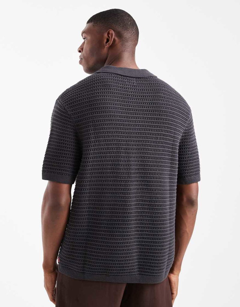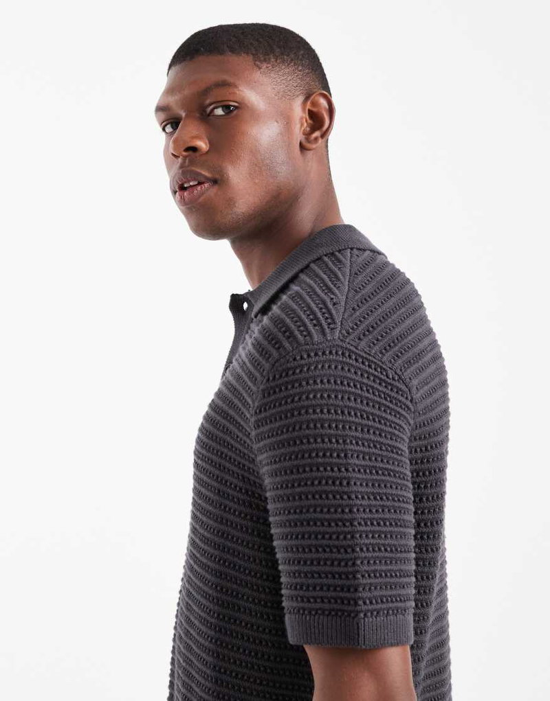Short Sleeve Knitted Polo In Charcoal