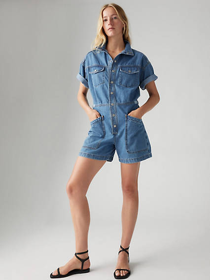 Keep things comfortable and cool with our Short-Sleeve Surplus Romper. We gave it a classic button-up front, four pockets and a cinchable waist for added adjustability. A comfortable surplus romper Cut with a relaxed fit With four roomy pockets Features an adjustable waist Airy. Breathable. Light. This garment was made with lightweight twill to keep you looking good and feeling comfortable.