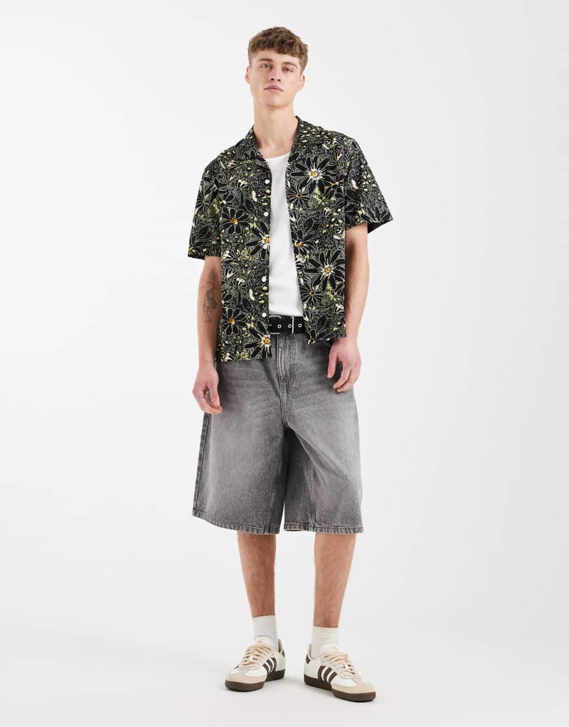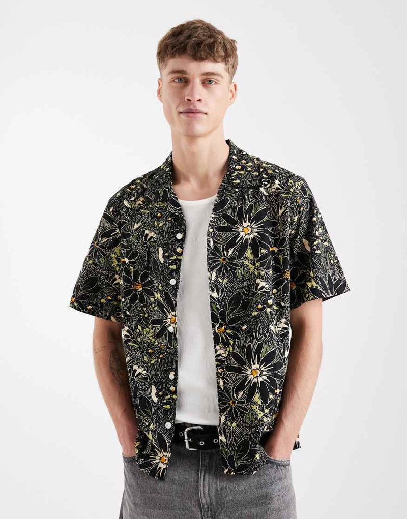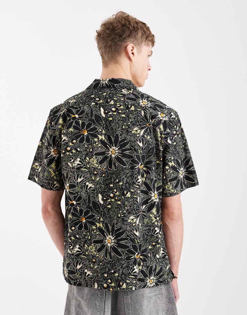 Sunset Short Sleeve Camp Shirt In Black Floral