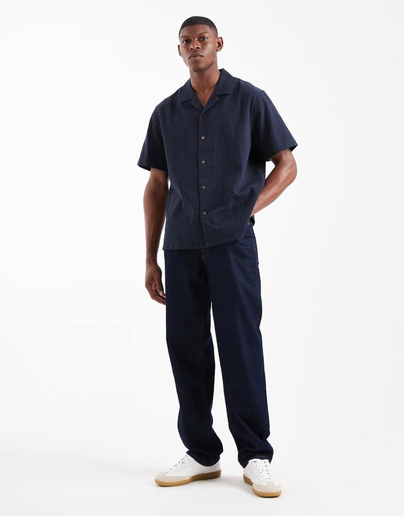 Sunset Short Sleeve Camp Shirt In Navy Check