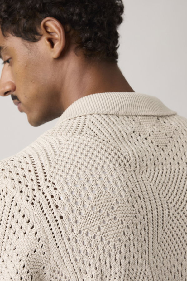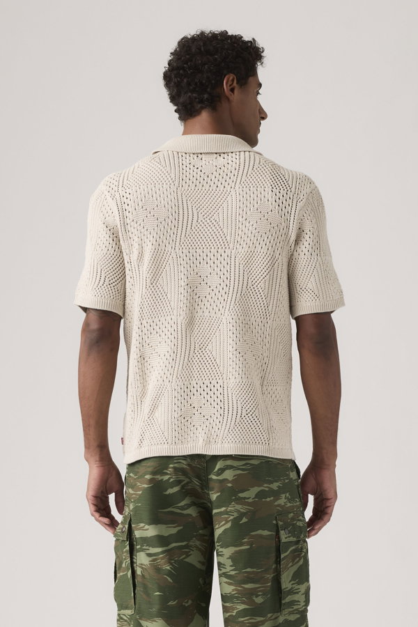 The classic camp shirt just got more comfortable. The Sweater Camp Shirt features a standard fit, a point collar and pointelle crochet. A versatile camp shirt Cut with an easy, standard fit With pointelle crochet.