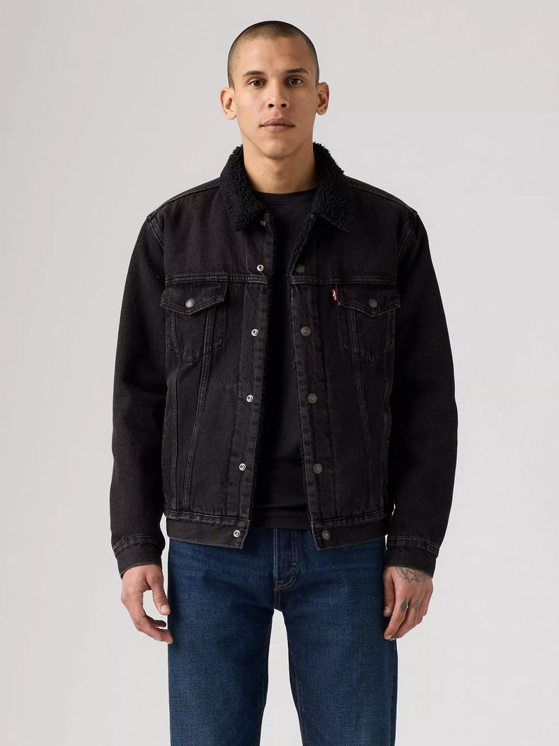 Bring depth to your outerwear collection with urban styles like this jacket from Levi's. Cut from with durable denim and lined with soft sherpa for extra warmth, it buttons up for effortless ease.