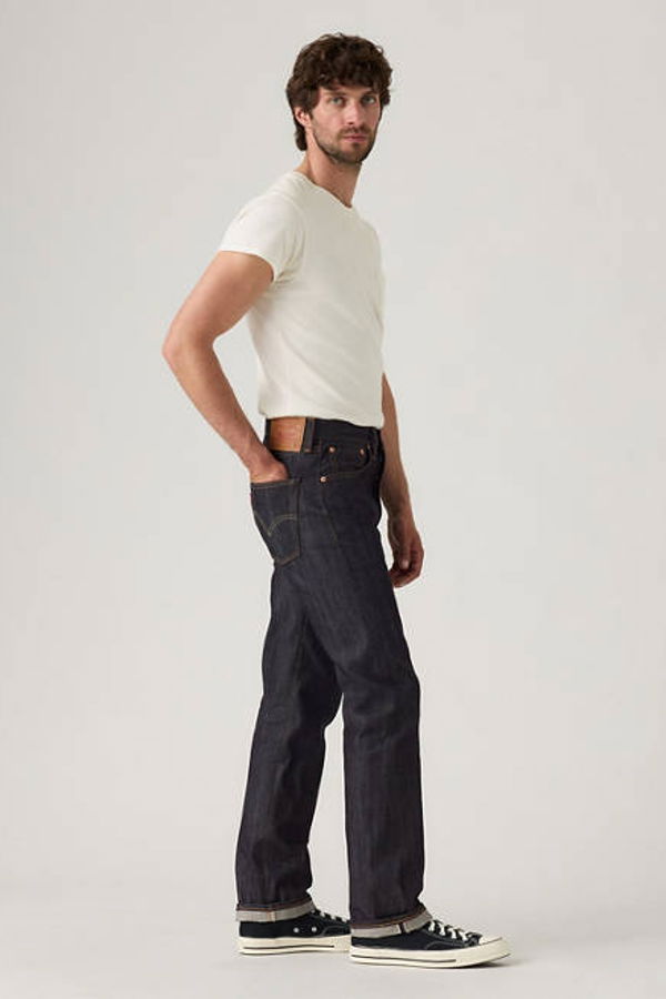 The year was 1947 and although the war had ended, the nation was much changed-and so were our 501® Jeans. The end of rations allowed for the return of some familiar 501® features, like the watch pocket rivets. But it also ushered in some updates in response to the changing time and emerging middle class, like a modern, slimmer fit and the removal of extraneous details like the cinch and suspender buttons. And while the back pocket Arcuate was no longer applied with paint as it was during the war, it had certainly changed. Thanks to new double-needle technology, the famed double-arched stitch could be mass-produced in uniform size and design, no longer subject to the sewing skills of the individual worker. Today, we reproduce all of these details for these 1947 501® Jeans using the same 12 oz. red line selvedge denim.