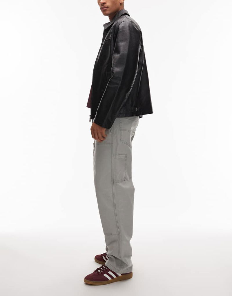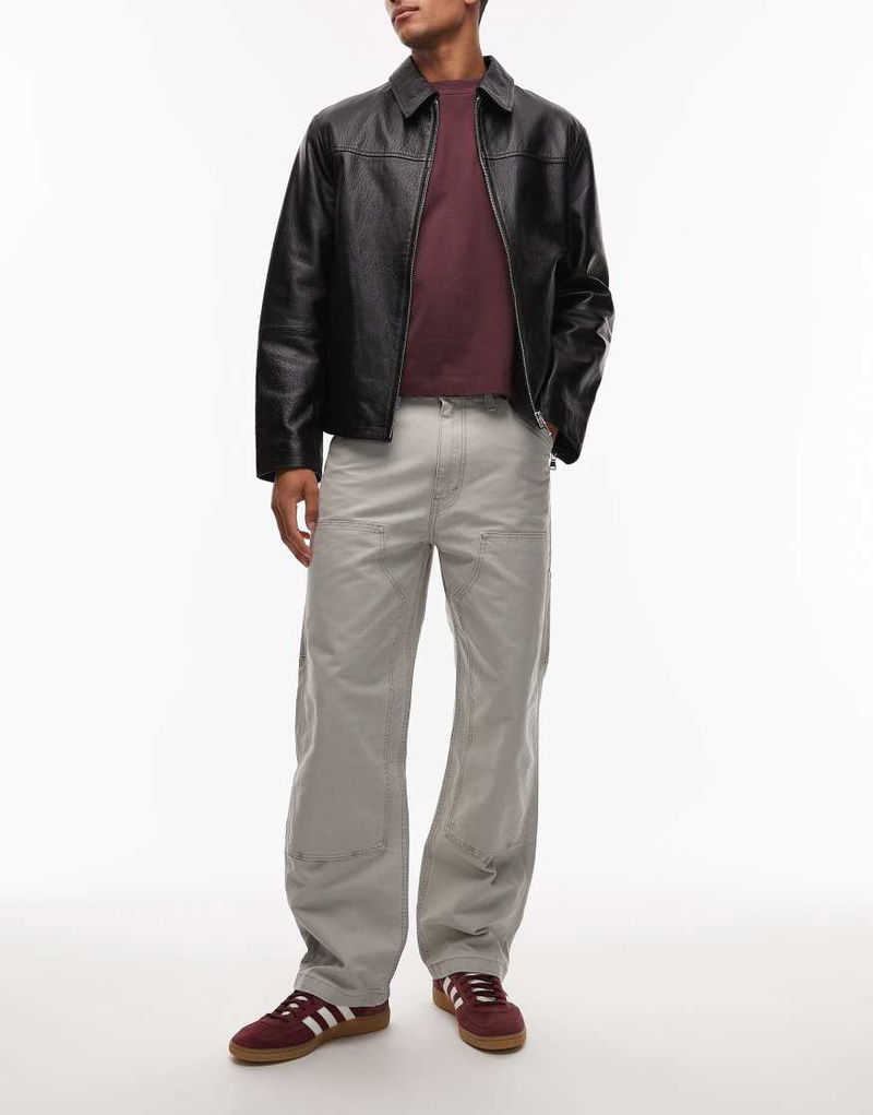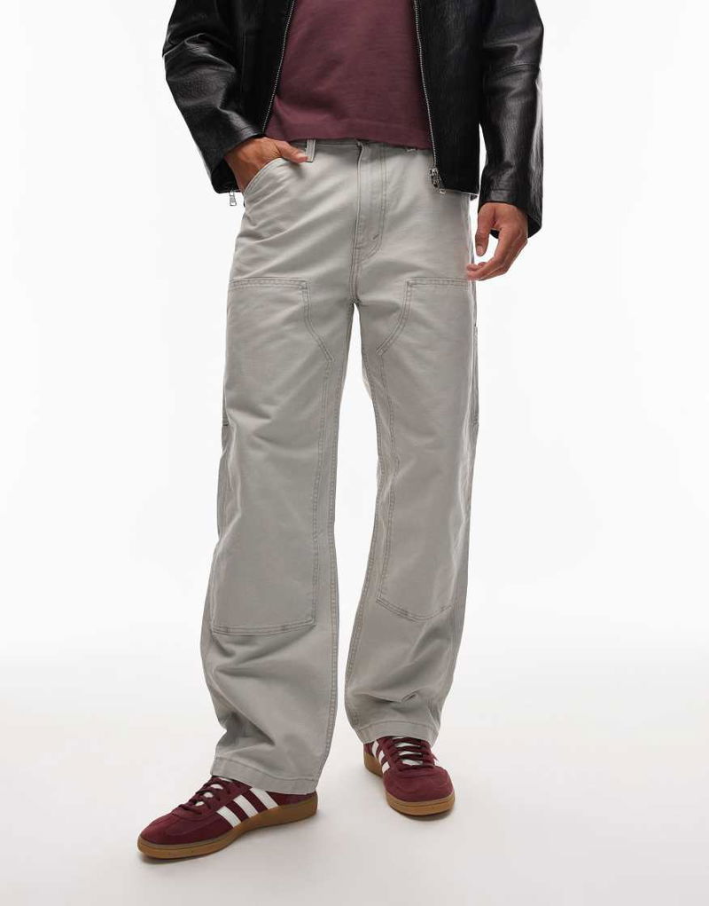 Workwear 568 Loose Straight Double Knee Jeans In Light Grey