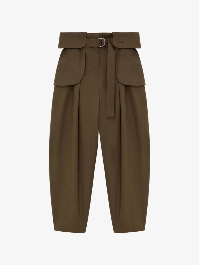 Barrel Pleat Cotton-Silk Cargo Trousers