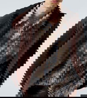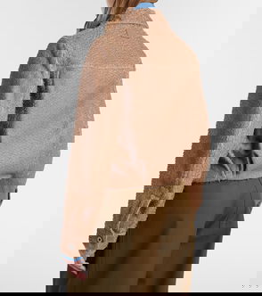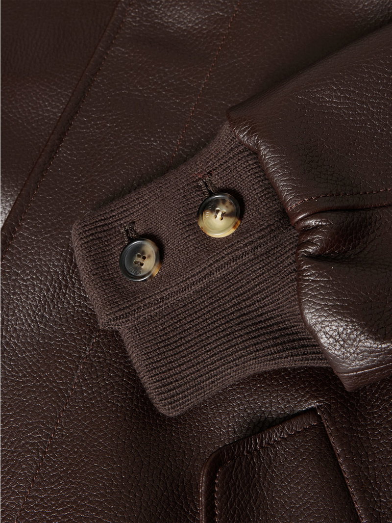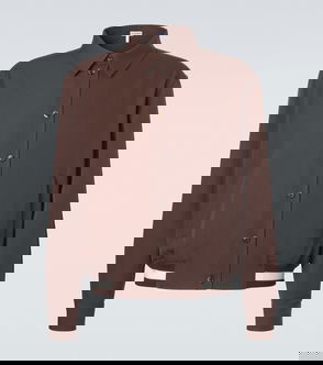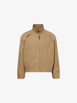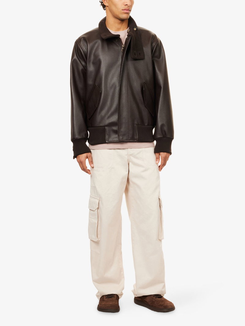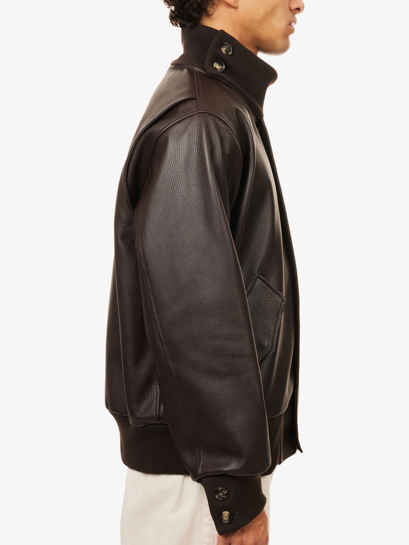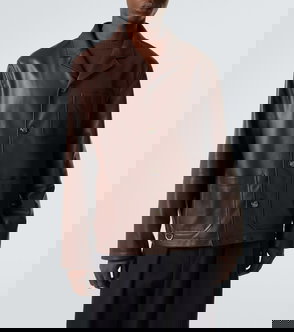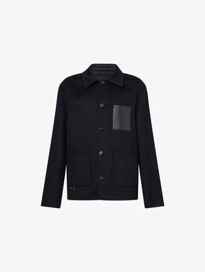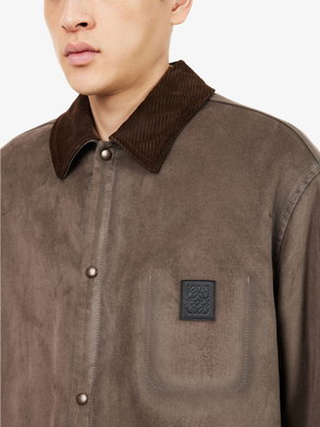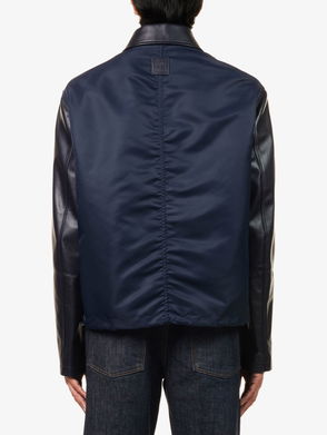 LOEWE leather jacket. Concealed snap and zip fastenings at front. Regular fit, high neck, long sleeves, flap pockets at front, logo patch at back.