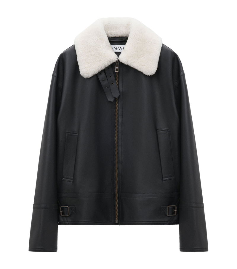 Loewe is on hand with outerwear for when the temperature unexpectedly drops. Cut from buttery lamb leather, this aviation jacket boasts a sumptuous fluffy lining, detachable shearling collar and embossed at the back with an iteration of the label's signature Anagram. It's the ideal companion to help you face colder climes.