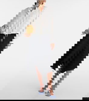 Leather-trimmed Cotton And Silk Midi Skirt