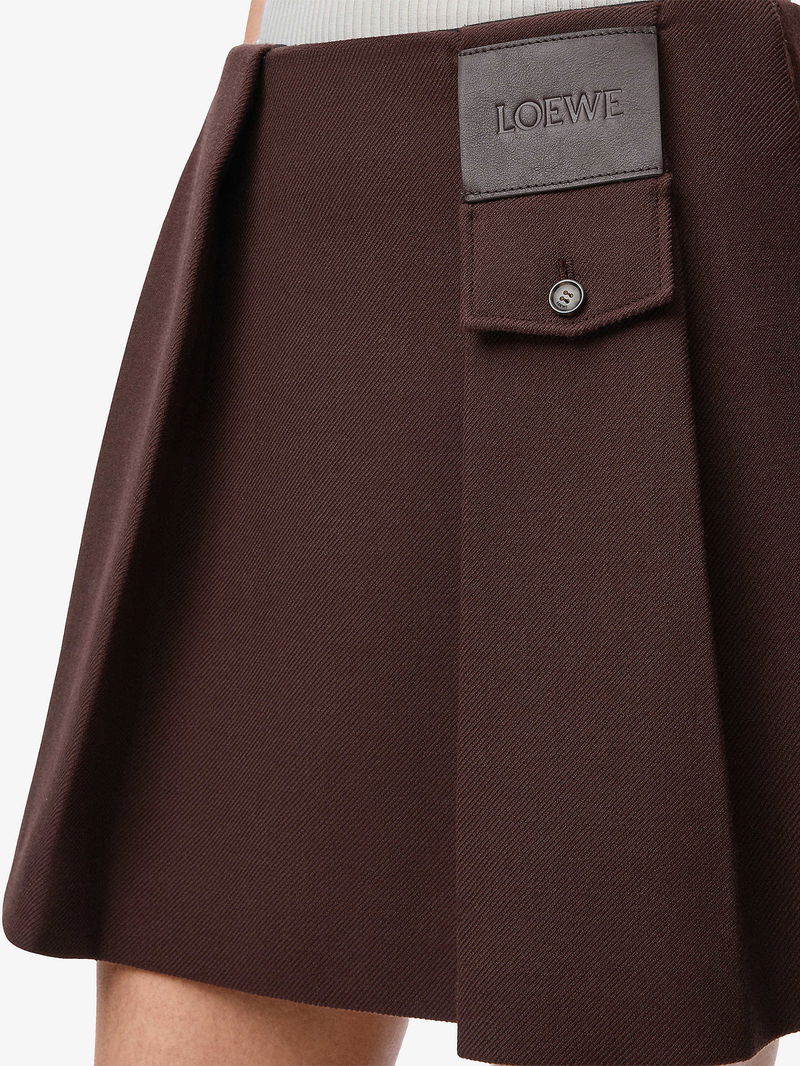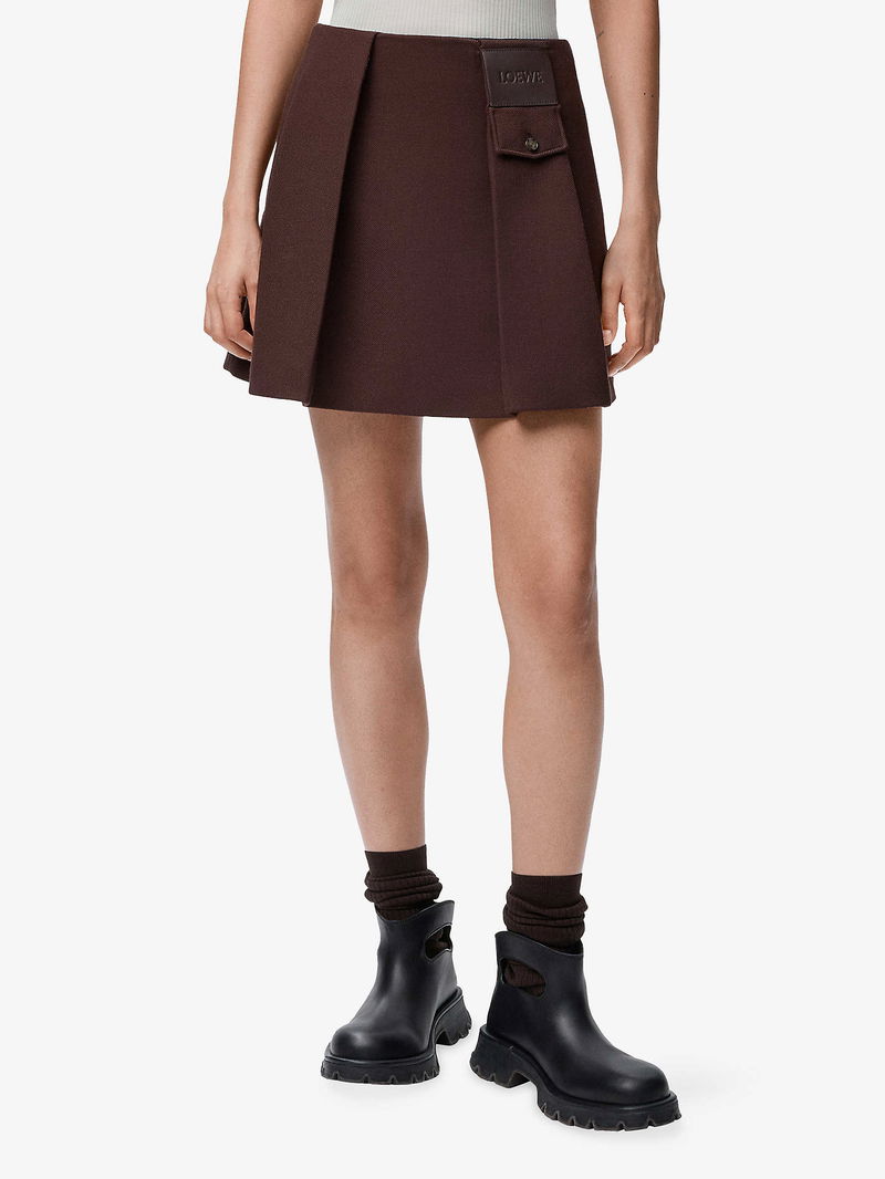 Pleated Flap-Pocket Wool-Blend Mini Skirt