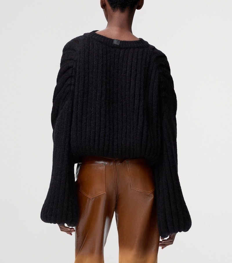 Ribbed Balloon-Sleeve Sweater