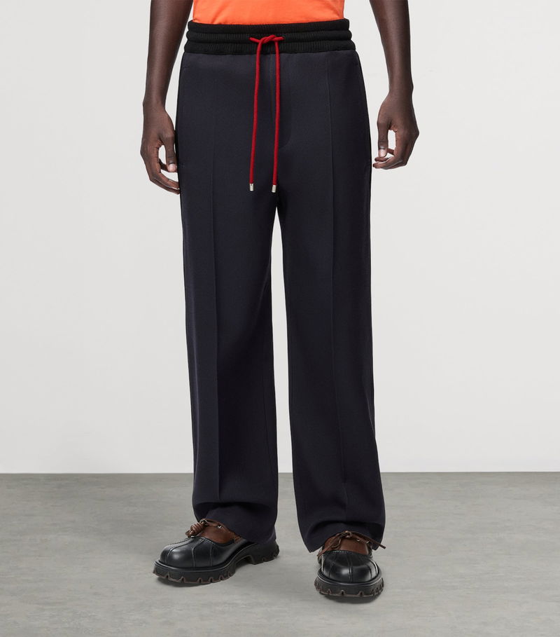 Embodying its relaxed appeal, loewe has a natural affinity for contemporary pieces infused with sporting codes. These drawstring trousers, for instance, see a vintage track silhouette revived in a rich wool blend, blurring the lines of elevated craft and athleisure.