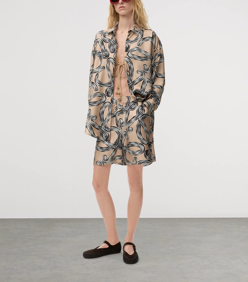 Playful, breezy and made for sunlit days, these loewe silk shorts from the Paula’s Ibiza summer collection are printed all over with the iconic Anagram, bringing the motif to life against flowing fabric. Lightweight and fluid, they catch the Balearic breeze with every step, whether wandering sun-soaked streets, lounging on a terrace or dipping toes into the sea.