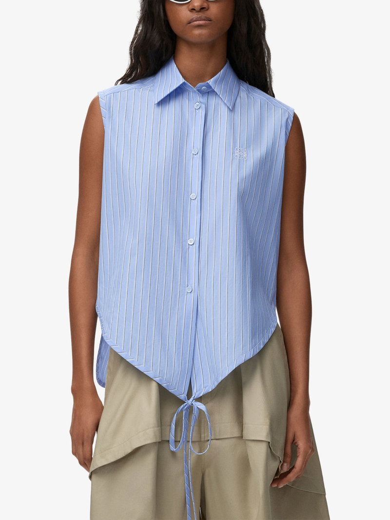 X Paula's Ibiza Striped Sleeveless Cotton-Poplin Shirt