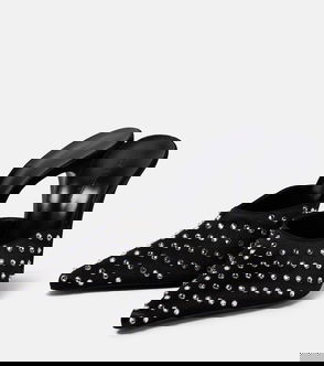 Turn to Magda Butrym for whimsical and elegant designs, such as these satin mules. The pointed-toe style is defined by a contrasting floral appliqué at the heel and a lustrous faux-pearl embellishment.