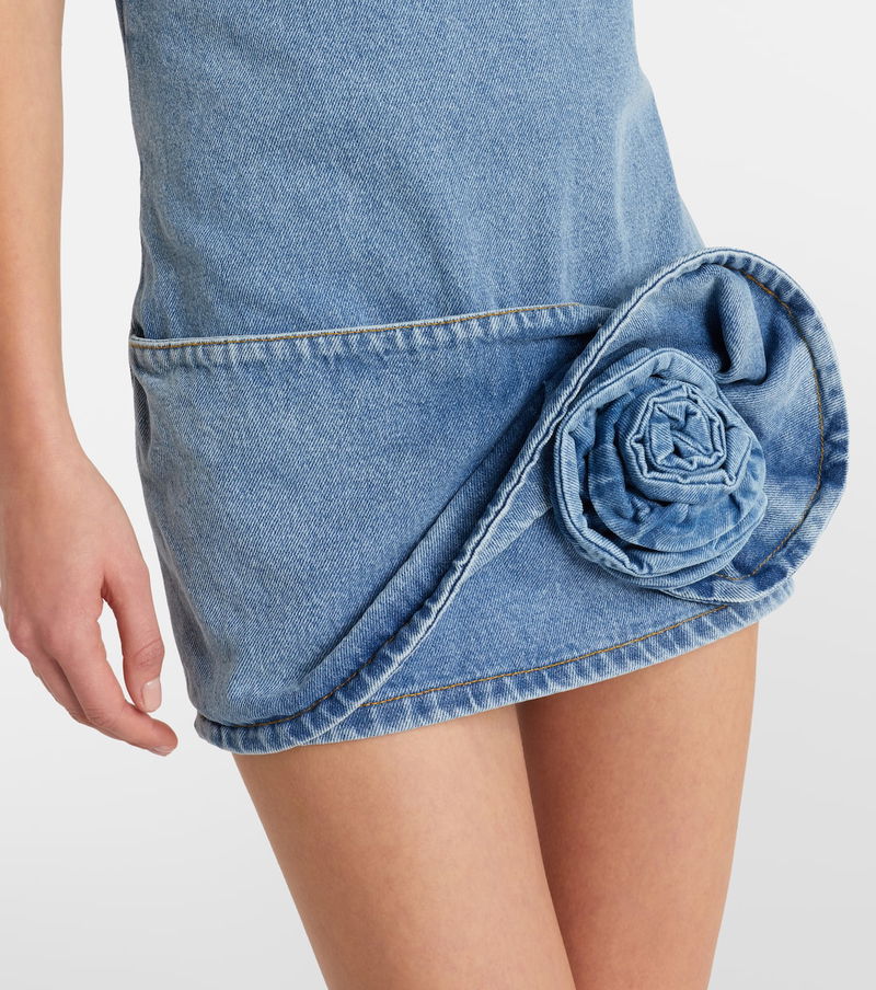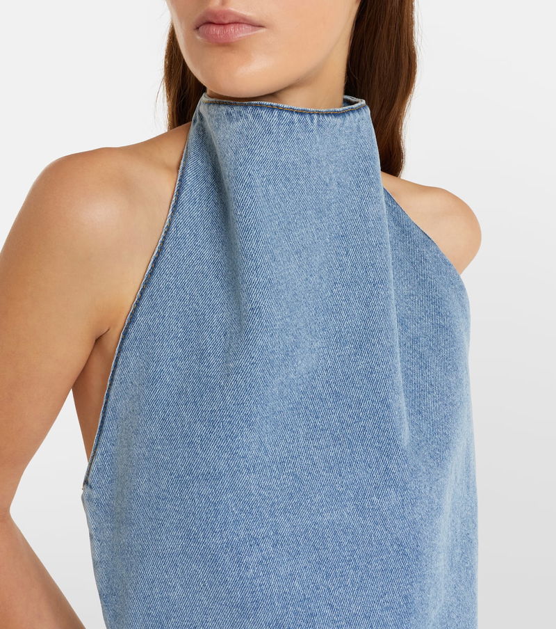 Shaking up the industry with its biting modernity and artisanal excellence, Magda Butrym exists to empower. This minidress features a halterneck silhouette crafted from denim and a tonal floral appliqué at the hem.