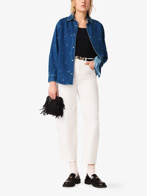 Bead-Embellished Cropped Denim Shirt