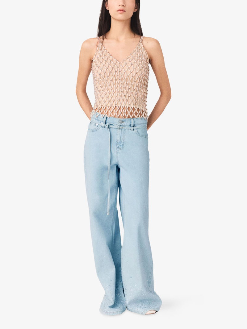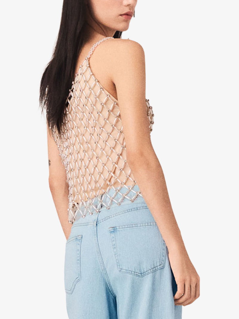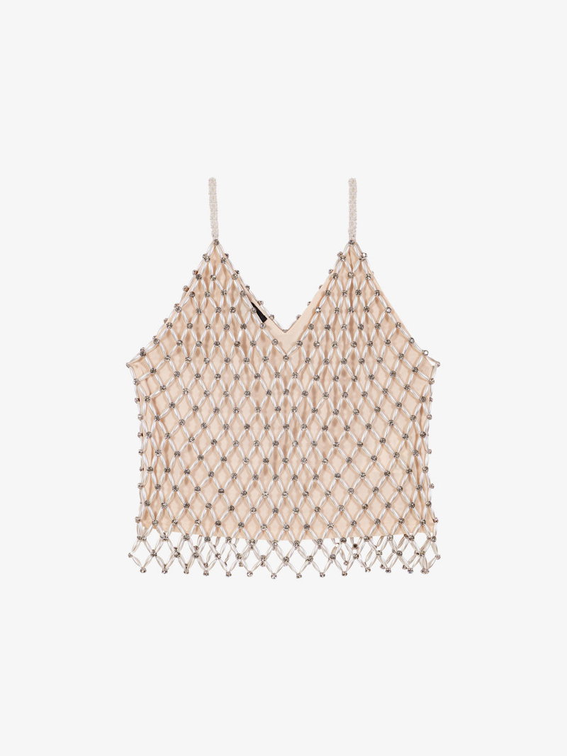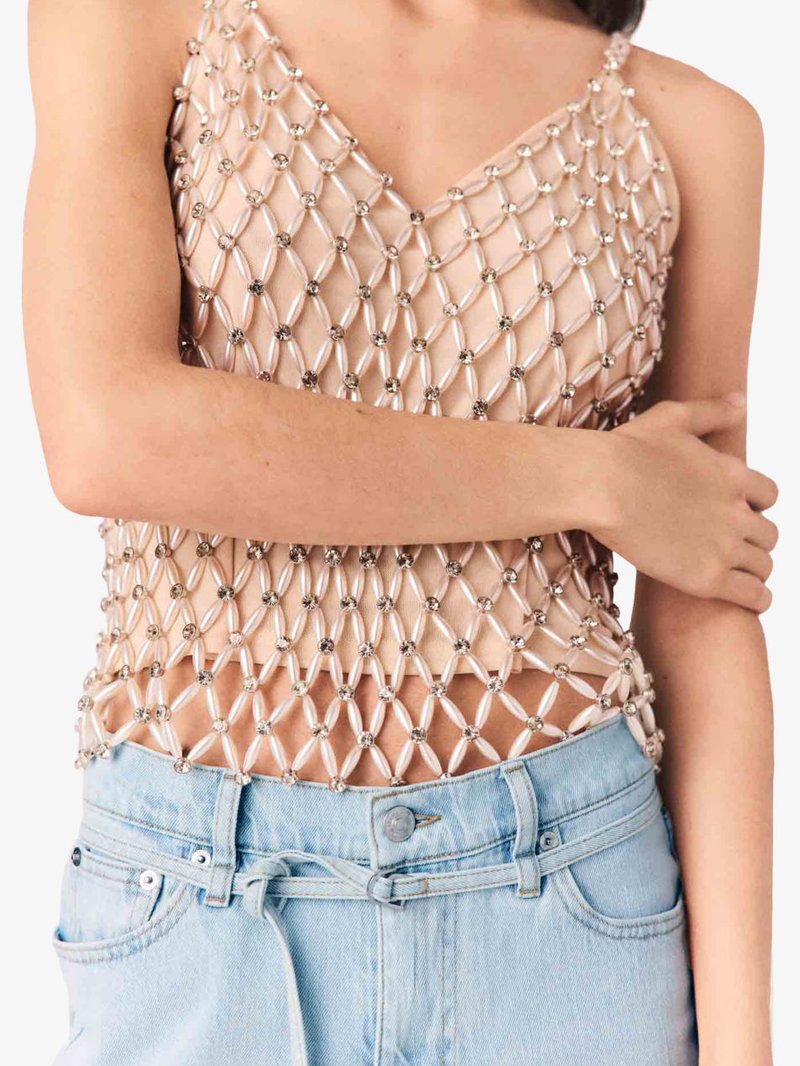 Beaded V-Neck Stretch-Woven Cami Top