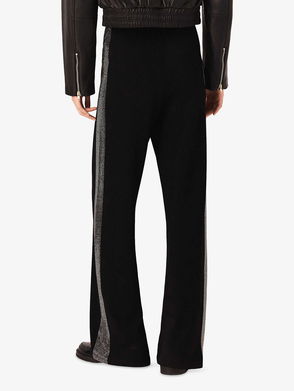 Flared pants, Checked, Twill, Faux patent-leather trims, Detachable belt, Two side slant pockets, Belt loops, Mid-rise cut, Concealed hook, button and zip fastening at front, Mid-weight.
